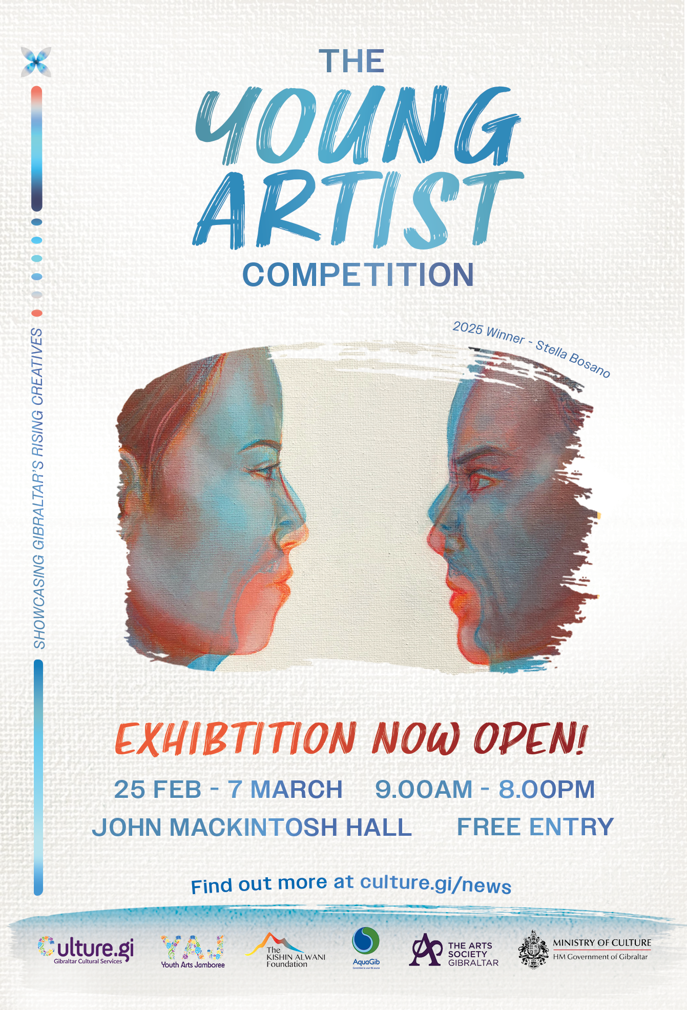 The annual Competition for Young Artists, organised by Gibraltar Cultural Services on behalf of the Ministry of Culture, is being held at the John Mackintosh Hall. This competitive exhibition is part of the annual Youth Arts Jamboree.