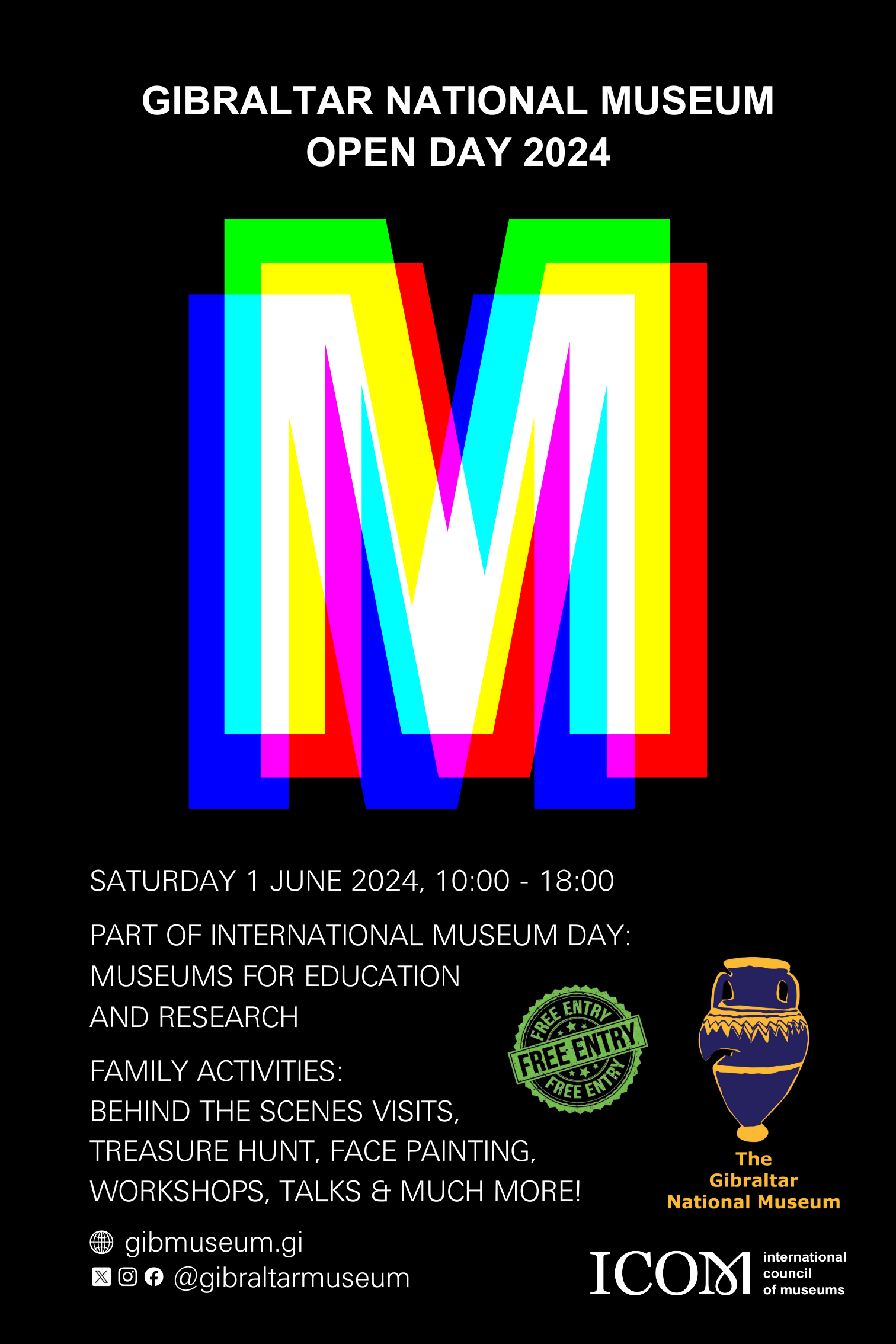The Gibraltar National Museum is pleased to announce its annual Open Day on Saturday 1st June 2024 from 10:00 to 18:00, in celebration of International Museum Day. This year's theme "Museums for Education and Research" was set by the International Council of Museums (ICOM).