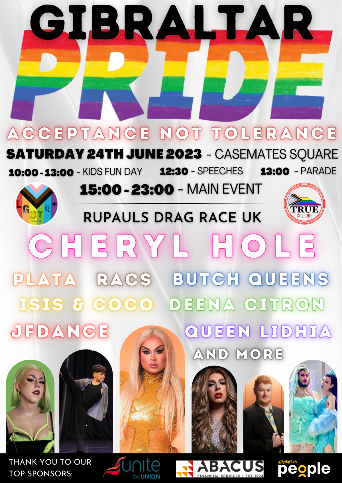 The Pride Parade will commence at 13:00 from Casemates and we will be back in the Square at 15:00 for more entertainment!