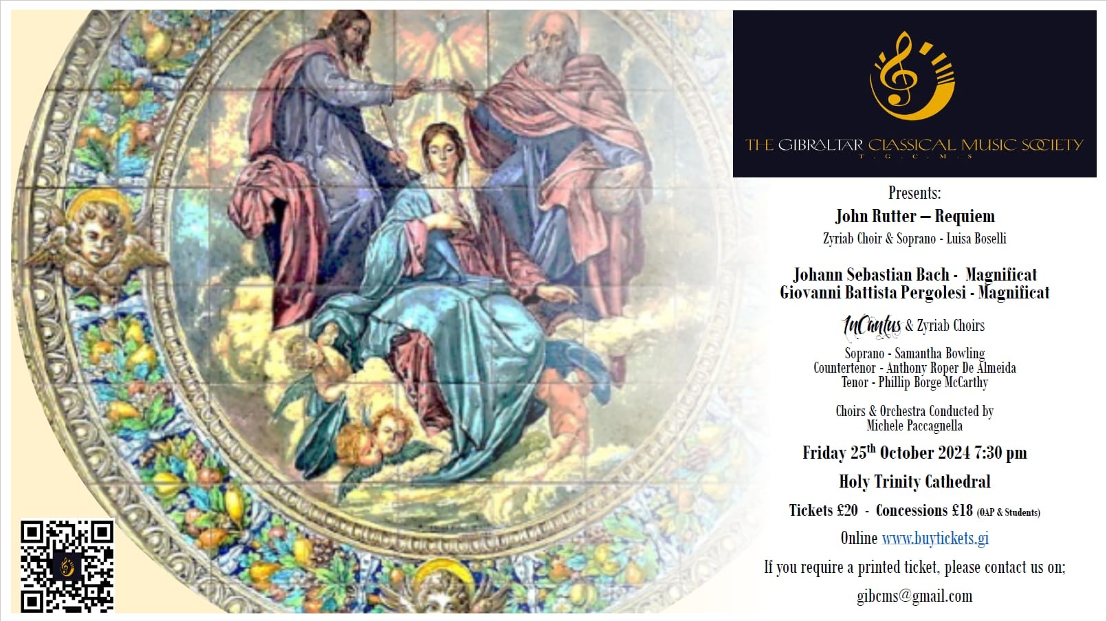 Presenting the InCantus and Zyriab Choirs and Orchestra under the baton of Michele Paccagnella this is a concert not to be missed. John Rutter 'Requiem' is performed by Zyriab Choir with soprano soloist Luisa Boselli followed by Johann Sebastian Bach 'Magnificat' and Giovanni Battista Pergolesi 'Magnificat' performed by InCantus and Zyriab Choirs with soloists soprano Samantha Bowling, countertenor Anthony Roper De Almeida and tenor Phillip Borge McCarthy.