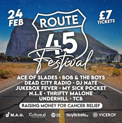 MAG Presents the Route 45 Festival taking place in Viceroy to raise money for the Cancer Relief Centre whilst celebrating local talent. Live Music from 5pm until late featuring 8 bands and 2 DJs. Food will be available at the event.