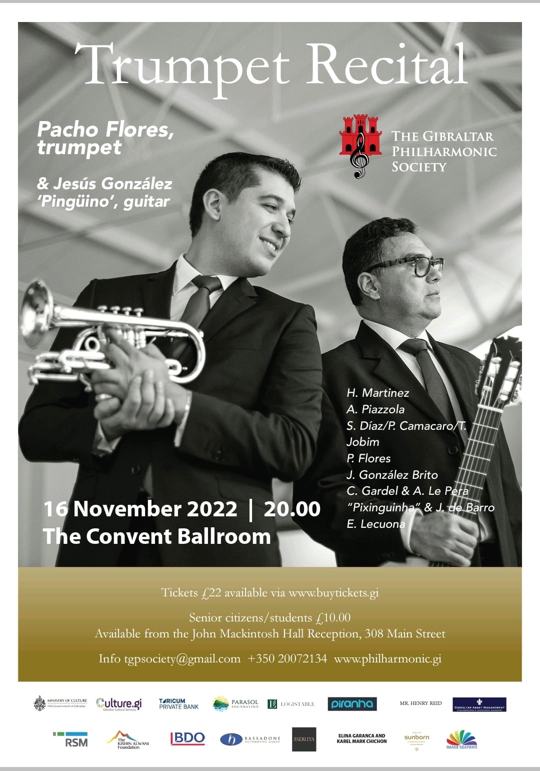 We are getting ready for the following concert, Trumpet Recital, which will be held on 16 November 2022 at The Convent Ballroom, featuring world-renowned trumpeter Pacho Flores accompanied by guitarist Jesús ‘Pingüino’ Gonzalez.