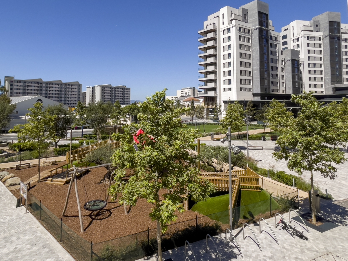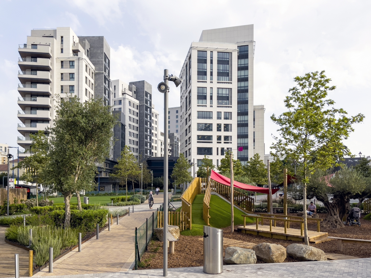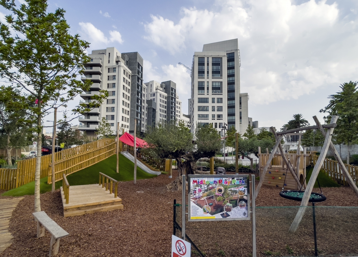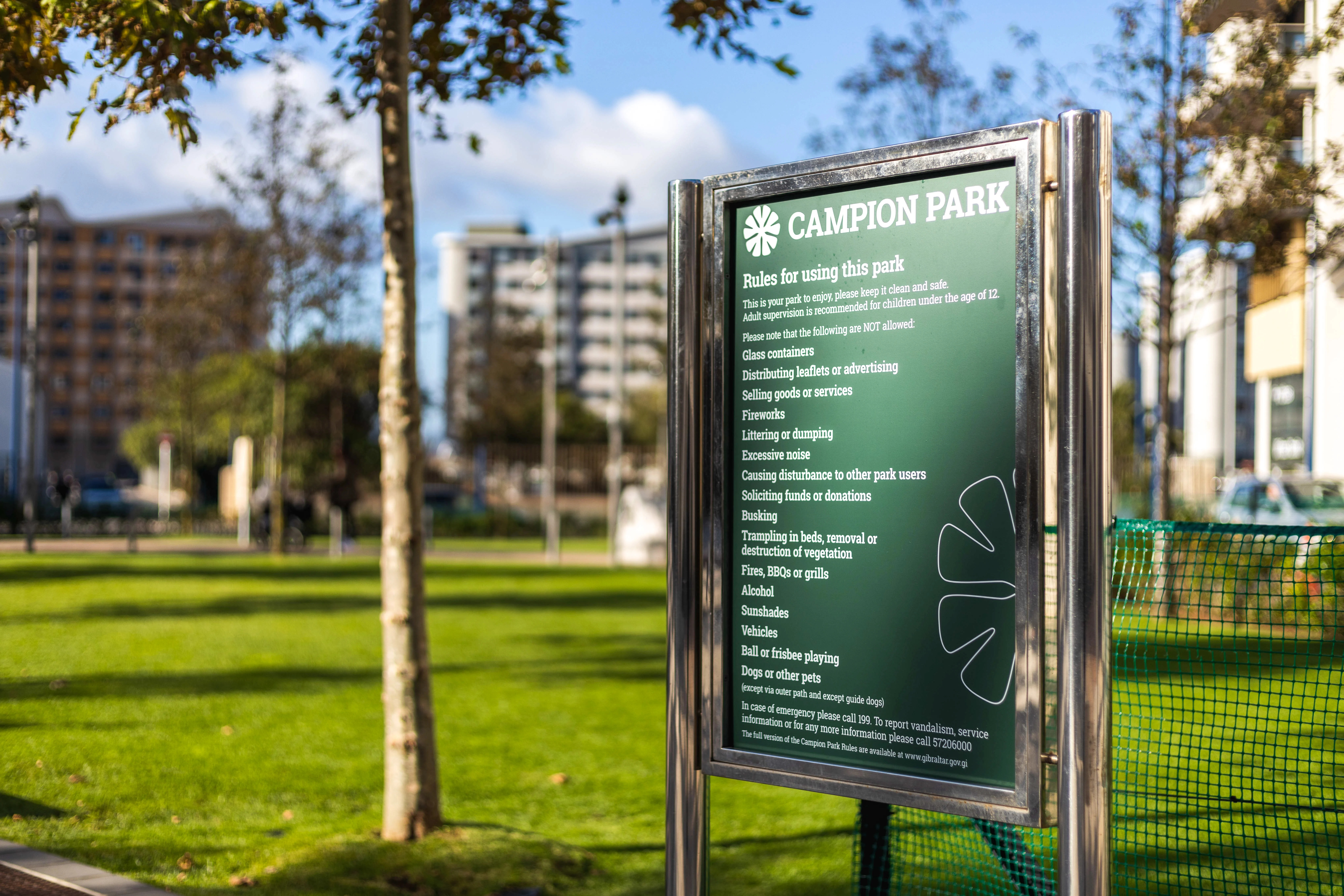 Campion Park in the area between the MidTown Development and the King’s Bastion Leisure Centre. The park is similar in style to the hugely popular Commonwealth Park, which it is linked to via the Leisure Centre and along Queensway. Large grass areas as well as an open paved area will be available for use for projections, performances and other events. 80 new mature trees will provide a shaded canopy and a new carbon sink for Gibraltar. Incorporate is also a natural children’s play area featuring wood structures in keeping with the environmental aims of the space.